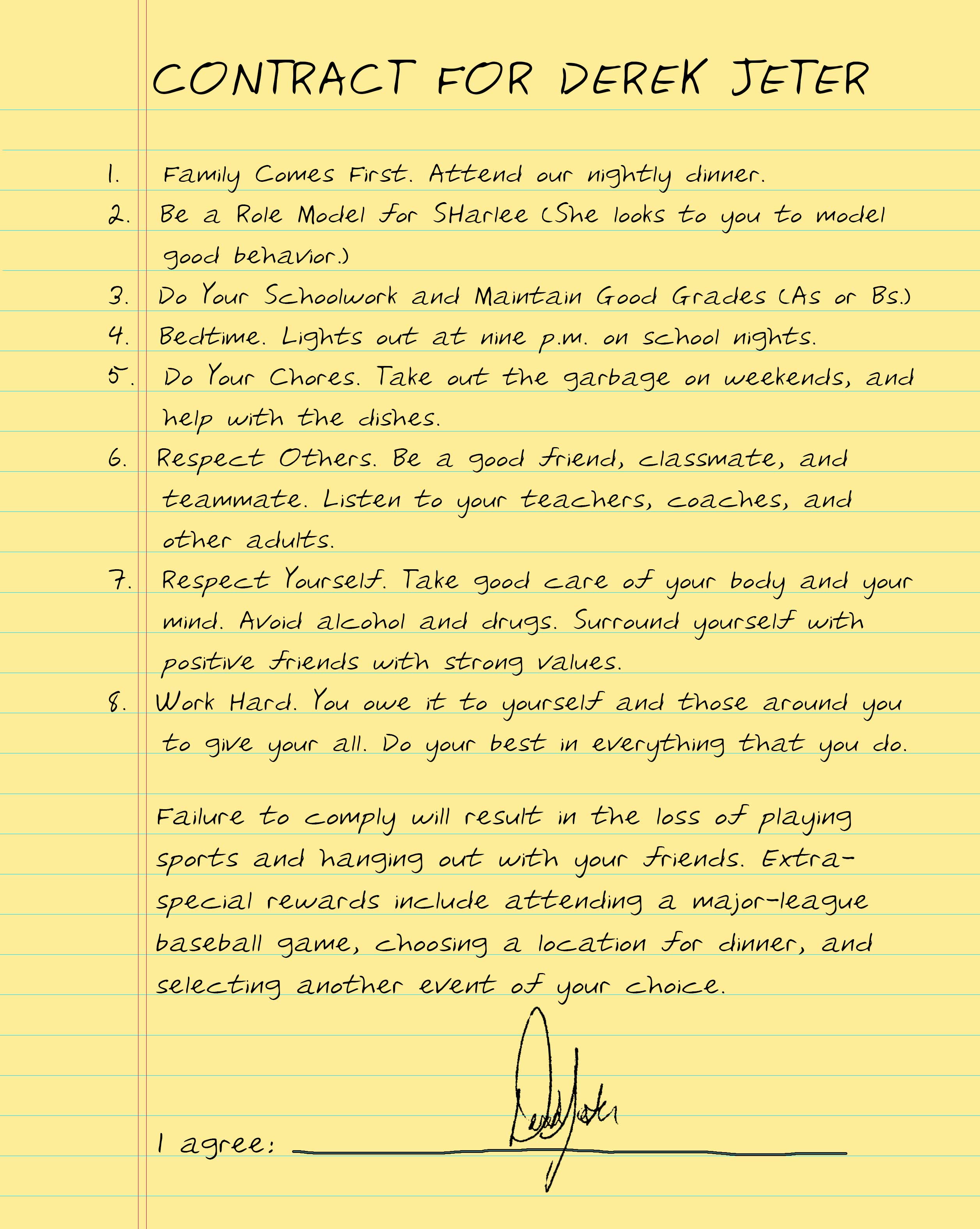 Create a contract like Derek's that can be shared with your parents or an adult you look up to. Think about what your goals are and what would be included in your contract, setting guidelines for school work, rules about schedules and free time, establishing consequences if the contract isn't followed, and what kinds of rewards you might earn for sticking with your contract. For reference, click on Derek's contract to take a look at the kinds of things his parents included. When you're ready, download our contract template to use to write your own contract.